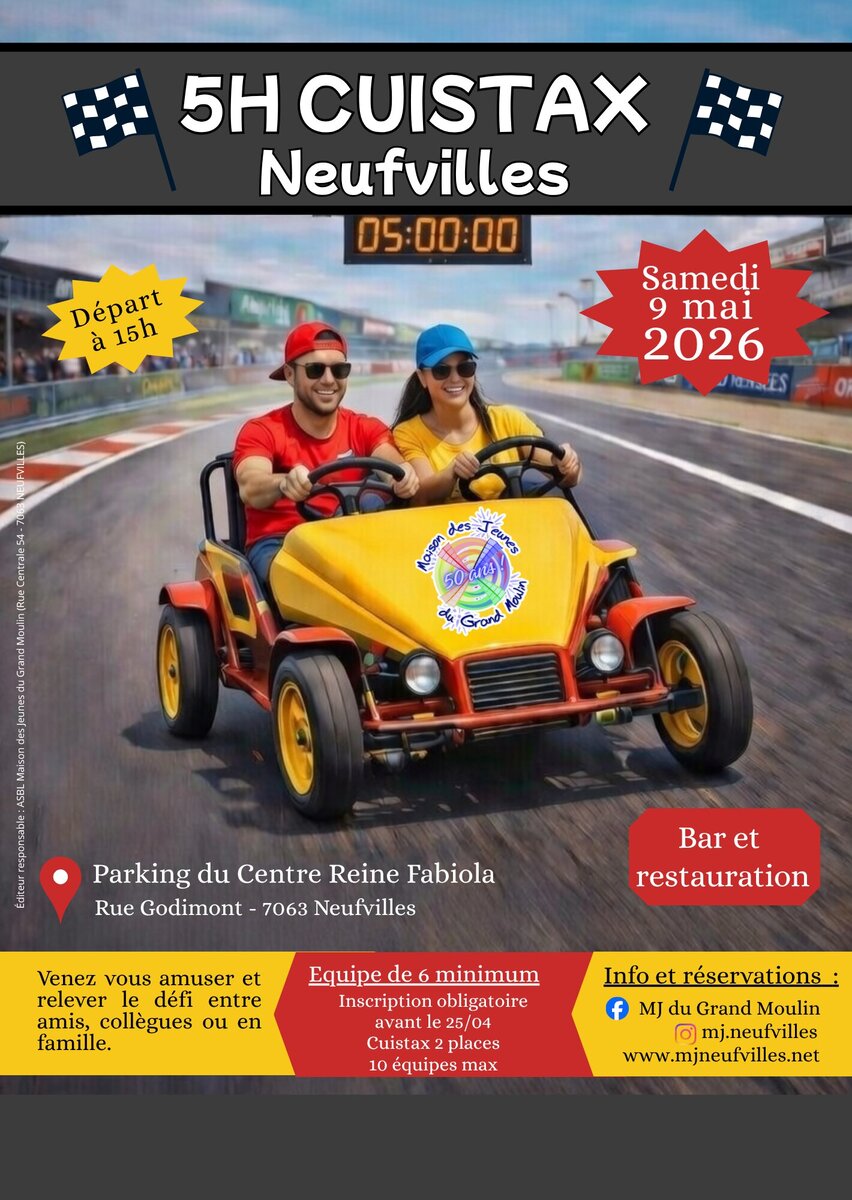 Pour célébrer ses 50 ans, la mj de Neufvilles vous invite à participer à un événement inédit au cœur du village : une course relais de 5 heures… en cuistax ! 🚴‍♂️