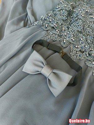 Un noeud papillon a été confectionné (pour Monsieur) avec une partie du tissu provenant du recourcissement de la robe.