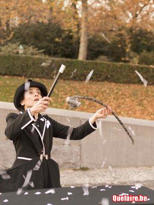 Vespa, la magicienne-clown, malgré elle, se retrouve à devoir rappeler à l’ordre des objets affolés et des animaux (marionnettes) qui pètent les plombs.