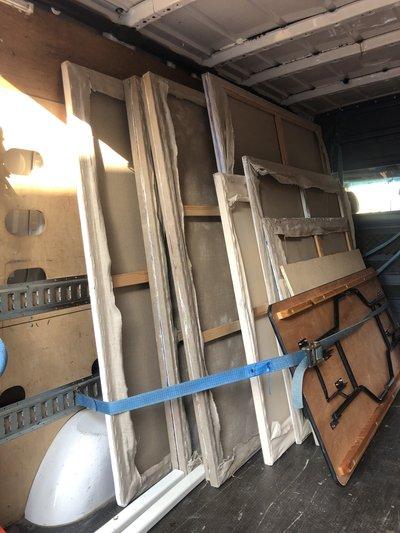 Camionnette qui est sur la photos. Dispose de sangles d'arrimage et de couvertures pour protéger vos biens.