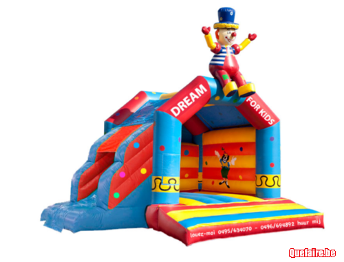 Dream for kids loue différents châteaux gonflables : 1 Jump'n slide 3.5 x 5 m -1 Circus 3.5 x 5 m -1 Safari jungle park, 1 grand clown 5 x 5.5m, Un Summer Beach 4.6 x 3.7 m, un multi-couleurs de 3.5 x 4 m, 1 x 4 tours 3.7 x 2.8 et 1 Mickey 4 x 4 m, pour toutes vos évènements : anniversaire, fêtes de famille, communion. Page 1-2 sur le site