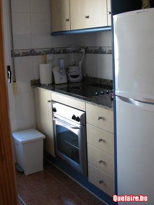 La cuisine avec percolateur, bouilloire électrique,cafetière napolitaine, grille-pain,senséo, dolce gusto, presse fruit, robot de cuisine, blender, soupe maker, plaque cuisson vitro céramique, frigo/congélateur et four électrique, lave-vaisselle, machine à lessiver, aspirateur, fer à repasser et table de repassage et un ventilateur sur pieds supplémentaire et un caddie.