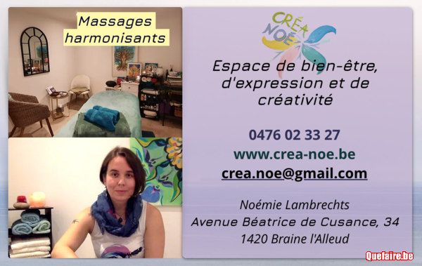 Bienveillance Écoute Délicatesse Agréablement surpris de ce moment passé chez Créa-Noe. Un Massage personnalisé et en harmonie avec sois. Je recommande +++