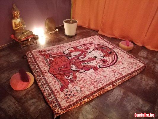Nirvanessense est un espace cocoon situé dans un cadre paisible à la campagne, un hammam, jacuzzi, salle de détente, piscine extérieur en saison sont à votre disposition en location privée. Une chambre de charme dans un chalet isolé est également disponible. Des soins sont prodigués seul ou en accompagnement des locations. N hésitez pas à consulter notre site http://www.nirvanessense.be