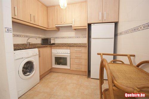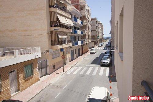 Appartement à louer Costa Blanca Alicante Torrevieja (Alicante sud de la côte espagnole). Pour profiter toute l'année d'un micro climat l'hiver rarement en dessous de 14 degrés avec 2 chambres au 1e étage avec ascenseur. Balcon avec une table ronde et deux tabourets pliants, vue latérale sur mer. Le paséo maritime tout proche qui offre de belles promenades! Ainsi que de nombreux restaurants, bars et magasins.