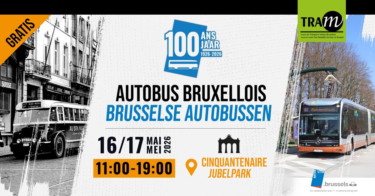 Les 16 et 17 mai 2026, nous célébrons une étape majeure de l’histoire de la mobilité bruxelloise : les 100 ans des autobus bruxellois.