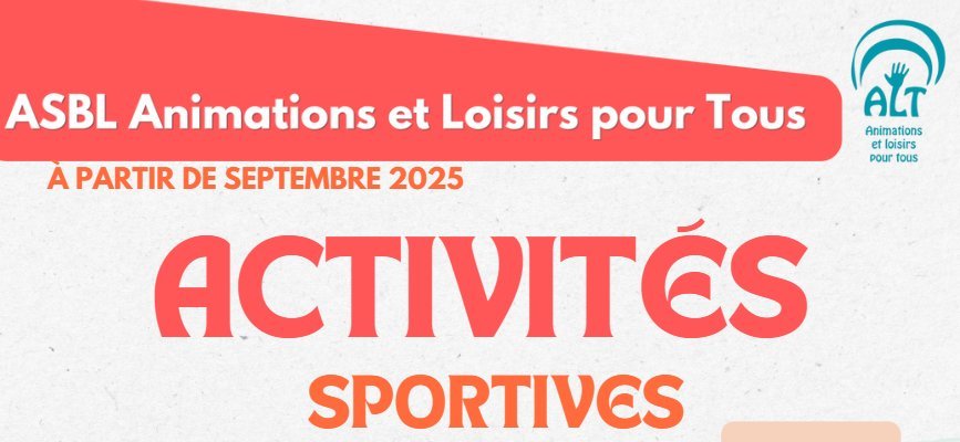 L’ASBL Animations et Loisirs pour Tous (ALT), vous propose un programme d’activités parascolaires. Celles-ci seront organisées du lundi 15 septembre 2025 au vendredi 12 décembre 2025.
