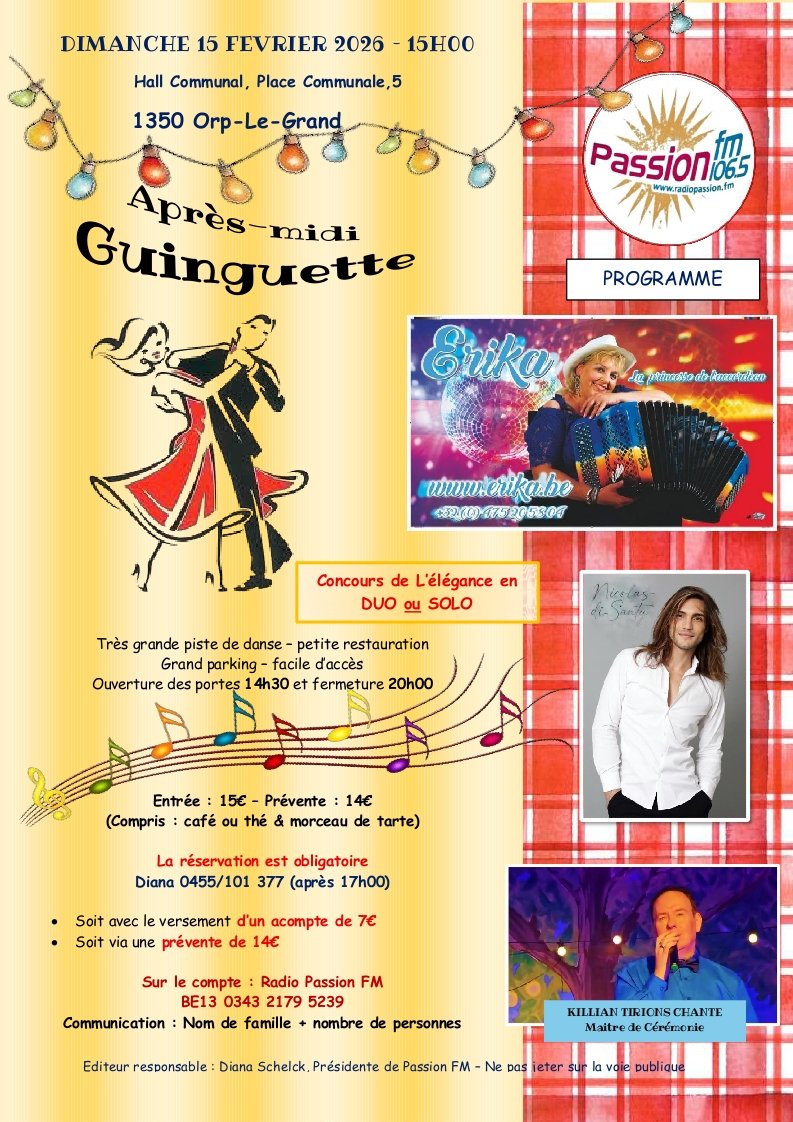 Radio Passion fm organise une après-midi "Guinguette" avec au programme Erika la princesse de l'accordéon, Nicolas di Santy, Killian Tirions et un concours de l'élégance en duo ou Solo.