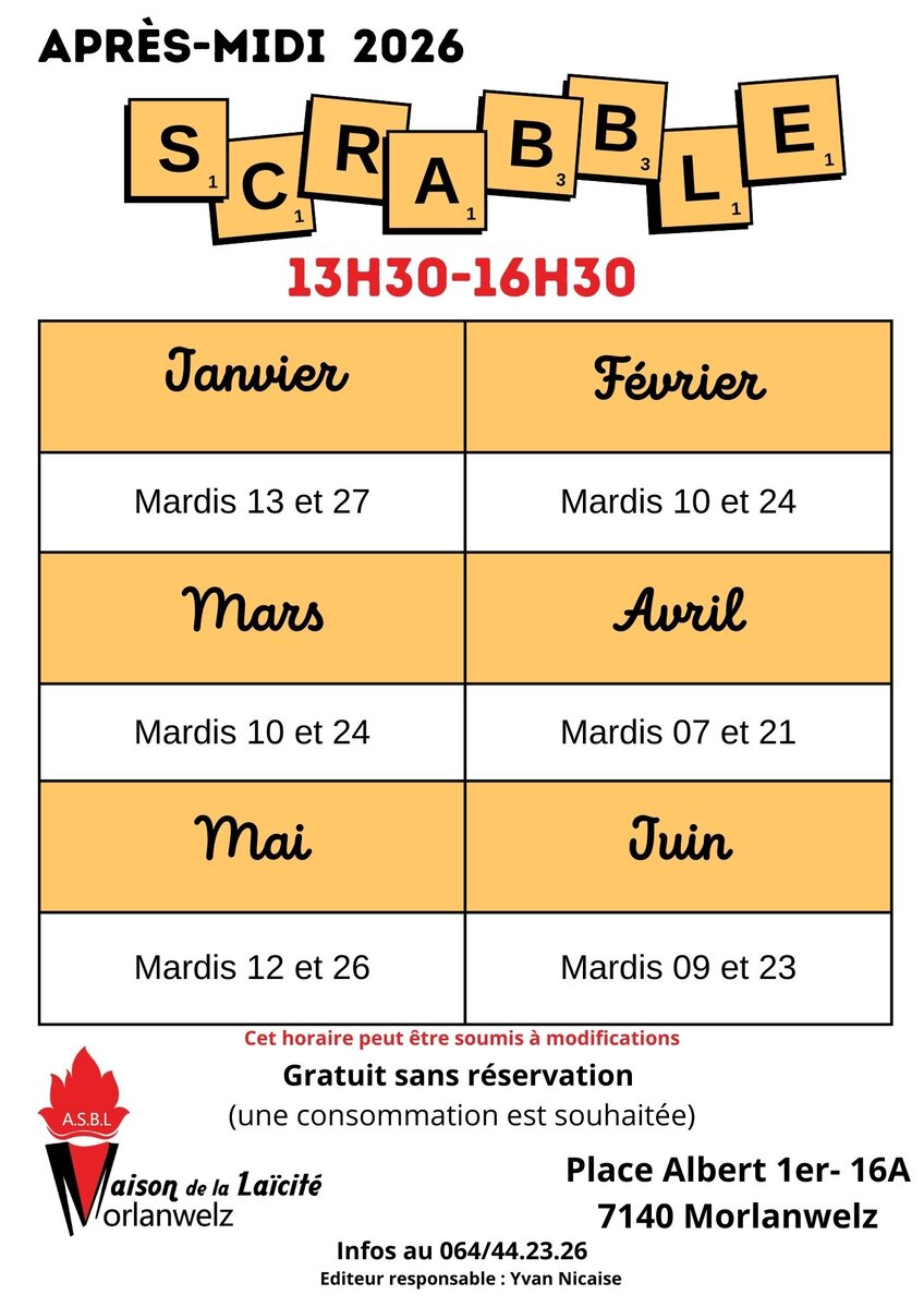La Maison de la Laïcité de Morlanwelz vous invite à ses après-midis Scrabble, chapeautés avec bienveillance par Georges Gérard.