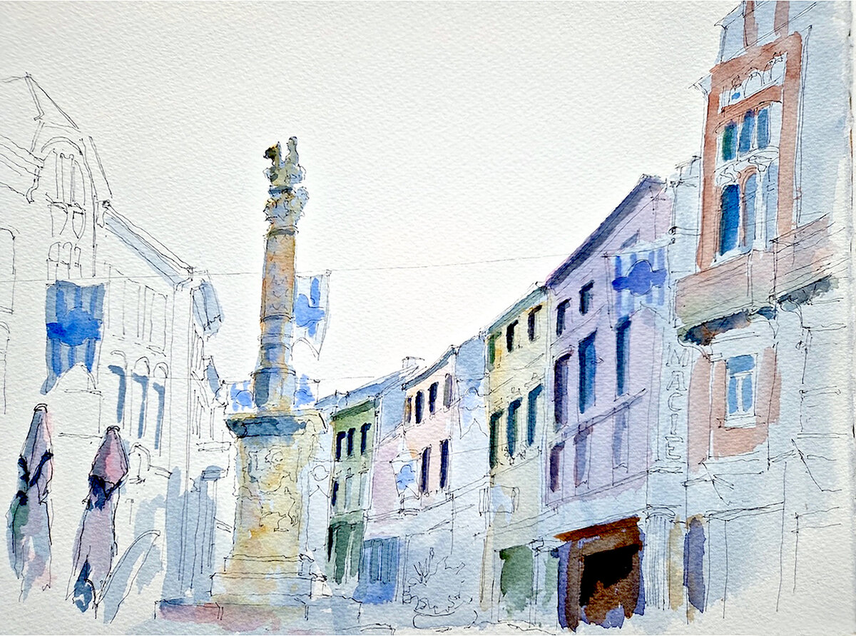 Le 20 septembre 2025, Arlon accueillait les Urban Sketchers, ces dessinateurs urbains venus de partout pour « croquer » la ville in situ et sur le vif. Amateurs et professionnels partageaient une journée de plein soleil, choisissaient le meilleur angle de vue pour saisir une perspective, un coin de rue, le détail d’une façade, un bref instant d’animation. Ils entretenaient une atmosphère communicative auprès des passants qui leur réservaient un accueil chaleureux, curieux de découvrir cette approche peu banale du chef-lieu.