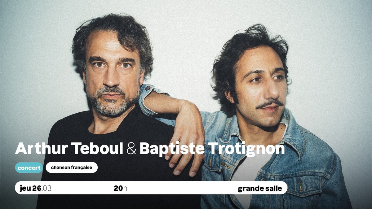 Arthur Teboul, le chanteur de Feu ! Chatterton, et Baptiste Trotignon, le célèbre pianiste de jazz, vous invitent à partager leur amour de la chanson française. De Serge Gainsbourg à Jacques Higelin, de Barbara à Henri Salvador, en passant par Jacques Brel, Georges Brassens et Brigitte Fontaine, ils se font les messagers d'un répertoire plus personnel que jamais. La voix d'Arthur et les notes de piano de Baptiste sont libres, comme l'expression de leur fragilité.