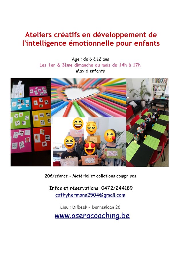 Atelier créatif pour enfants de 6 à 12 ans sur le thème des émotions, du partage d'expériences, sur le développement de l'intelligence émotionnelle.