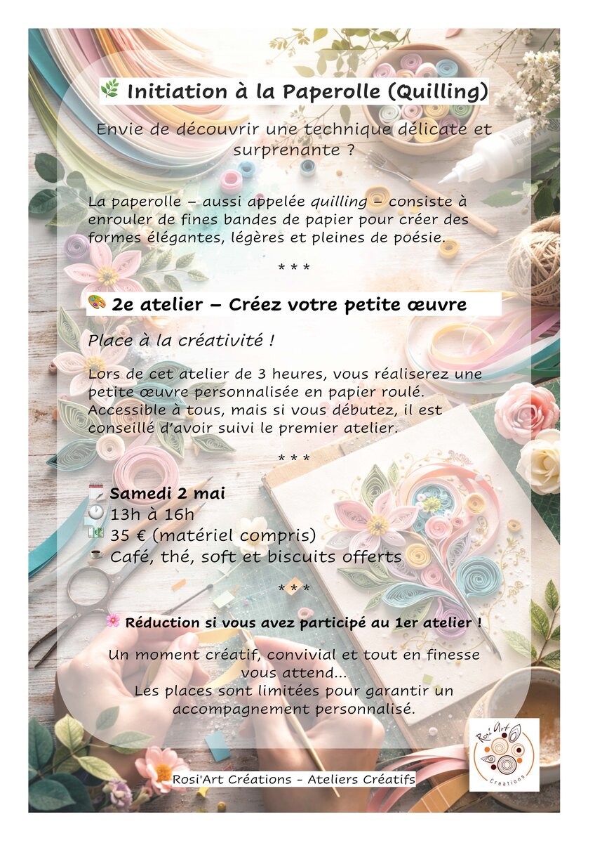 >> Autres dates pour Atelier d'initiation au Paperolle/Quilling pour adultes.