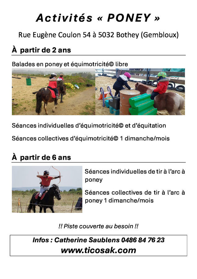 | Balade en poney - équimotricité (c) libre sur piste couverte (Le 22 novembre - Bothey) | |