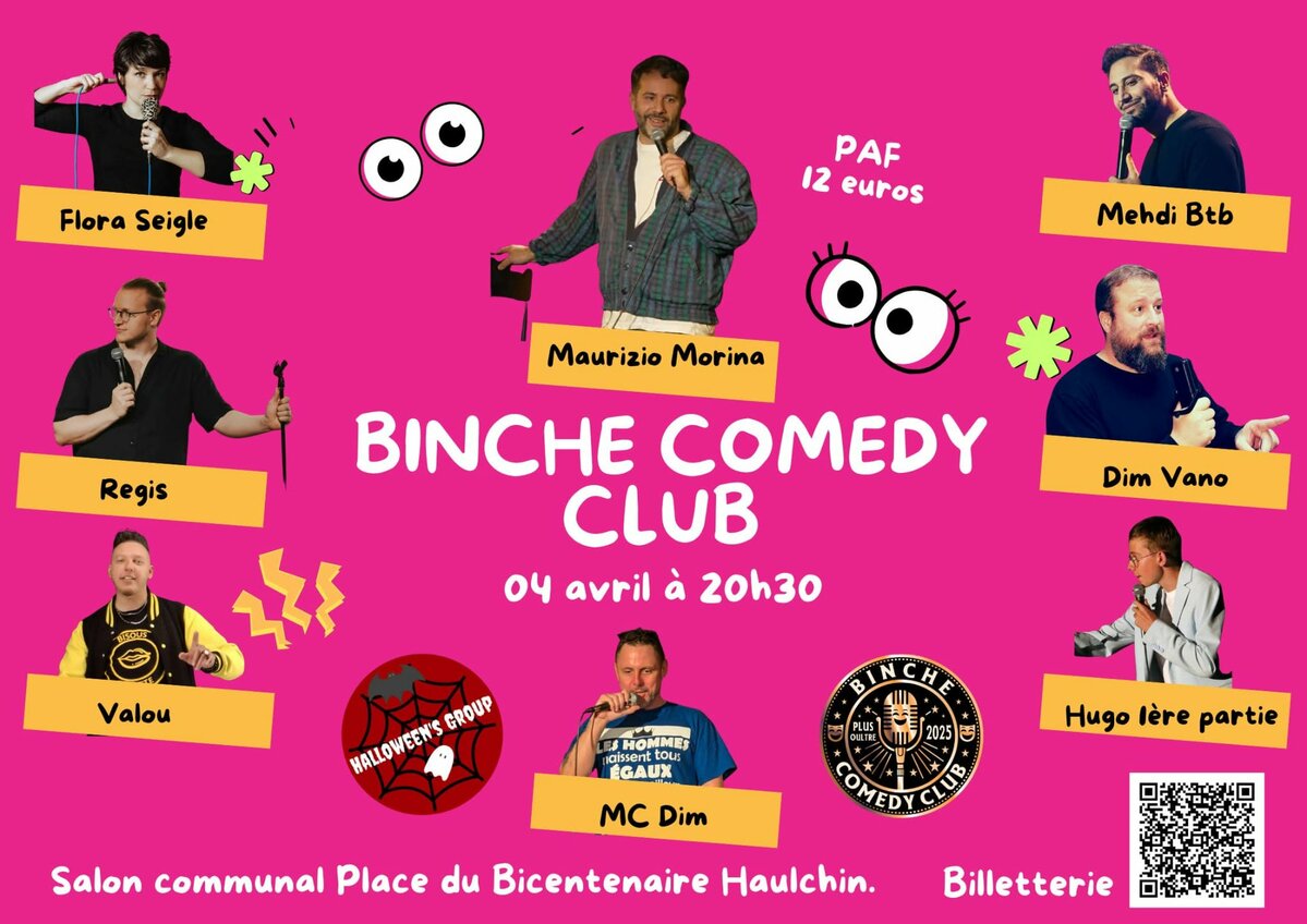 Dans le cadre du week-end festif organisé par Halloween’s Group Haulchin, le Binche Comedy Club pose ses micros pour une soirée stand-up qui s’annonce… dangereusement drôle.