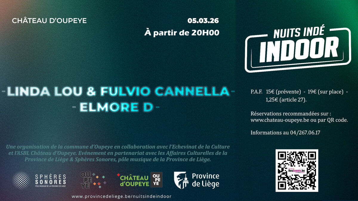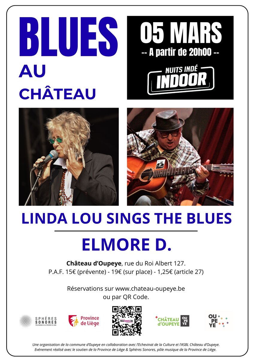 Le cycle « Blues au Château » redémarre le jeudi 05 mars 2026 avec la soirée Nuits Indé Indoor de la Province de Liège & Sphères Sonores qui mettra en avant des artistes originaires de la Province de Liège :