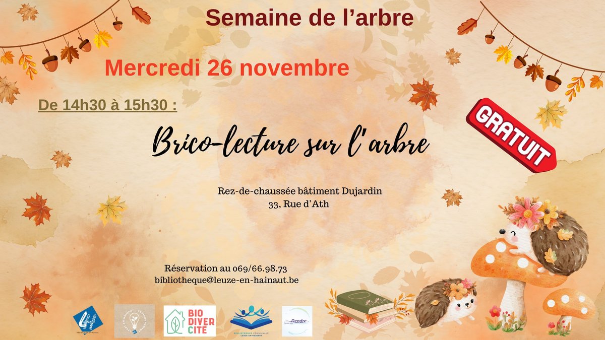 À l’occasion de la Semaine de l’Arbre, la bibliothèque de Leuze-en-Hainaut et le service environnement invitent tous les enfants à un moment de lecture et de créativité autour du thème de l’arbre !