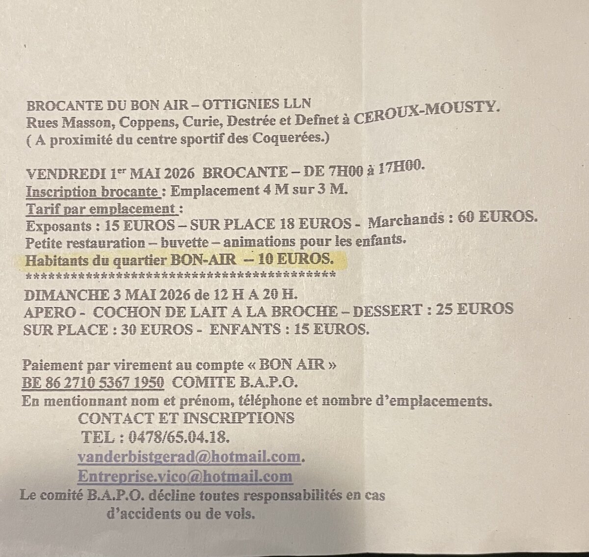 | Brocante du Depakot (Le 1er avril - Louvain-La-Neuve) | |