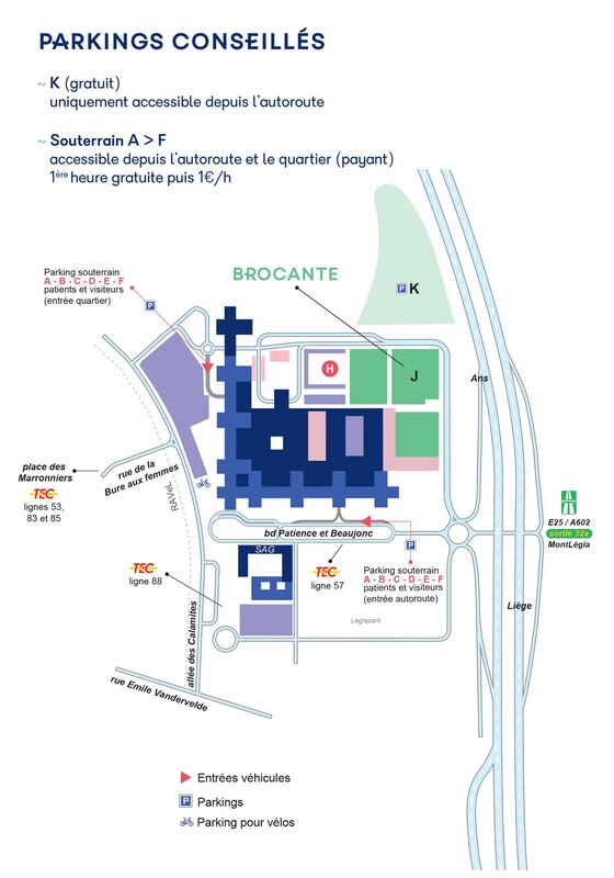 > Parking K de la clinique (gratuit), uniquement accessible depuis l'autoroute
