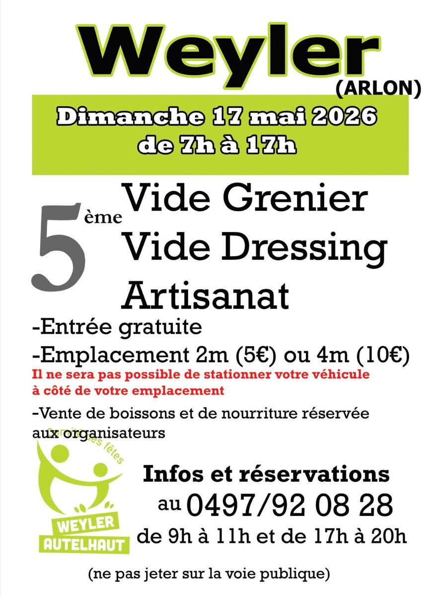 5ème vide-grenier , vide dressing et artisanat (brocante) organisé par le comité des fêtes de Weyler-Autelhaut Weyler.