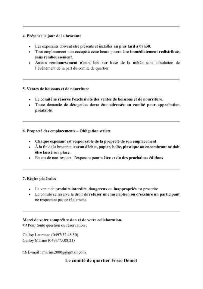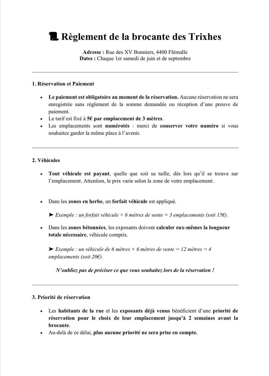 ⚠️ Merci de prendre connaissance du règlement avant la brocante.