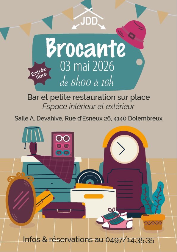 👉 Pour réserver votre emplacement, ainsi que la table et/ou le petit-déjeuner, merci de contacter Justine Cerfontaine, secrétaire de la Jeunesse de Dolembreux, par Sms uniquement au .