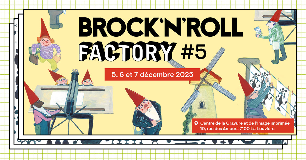 Cette année, Brock’n’Roll Factory revient au Centre de la Gravure et de l’Image Imprimée, en plein cœur de La Louvière, et célèbre sa 5e édition avec trois journées entièrement dédiées à l’art imprimé sous toutes ses formes !