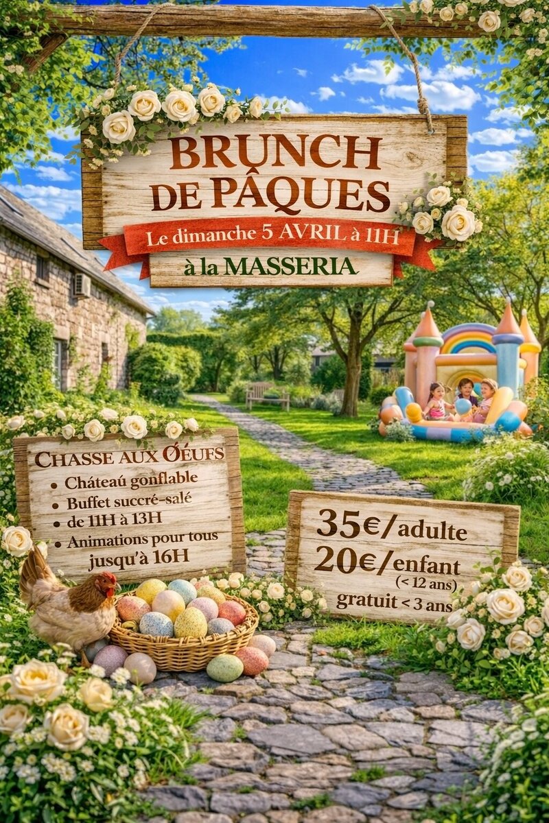 La Masseria invite petits et grands à célébrer Pâques autour d’un brunch sucré-salé convivial dans une ambiance printanière, avec grande chasse aux œufs dans les jardins, château gonflable, animations pour enfants et surprises pour toute la famille !
