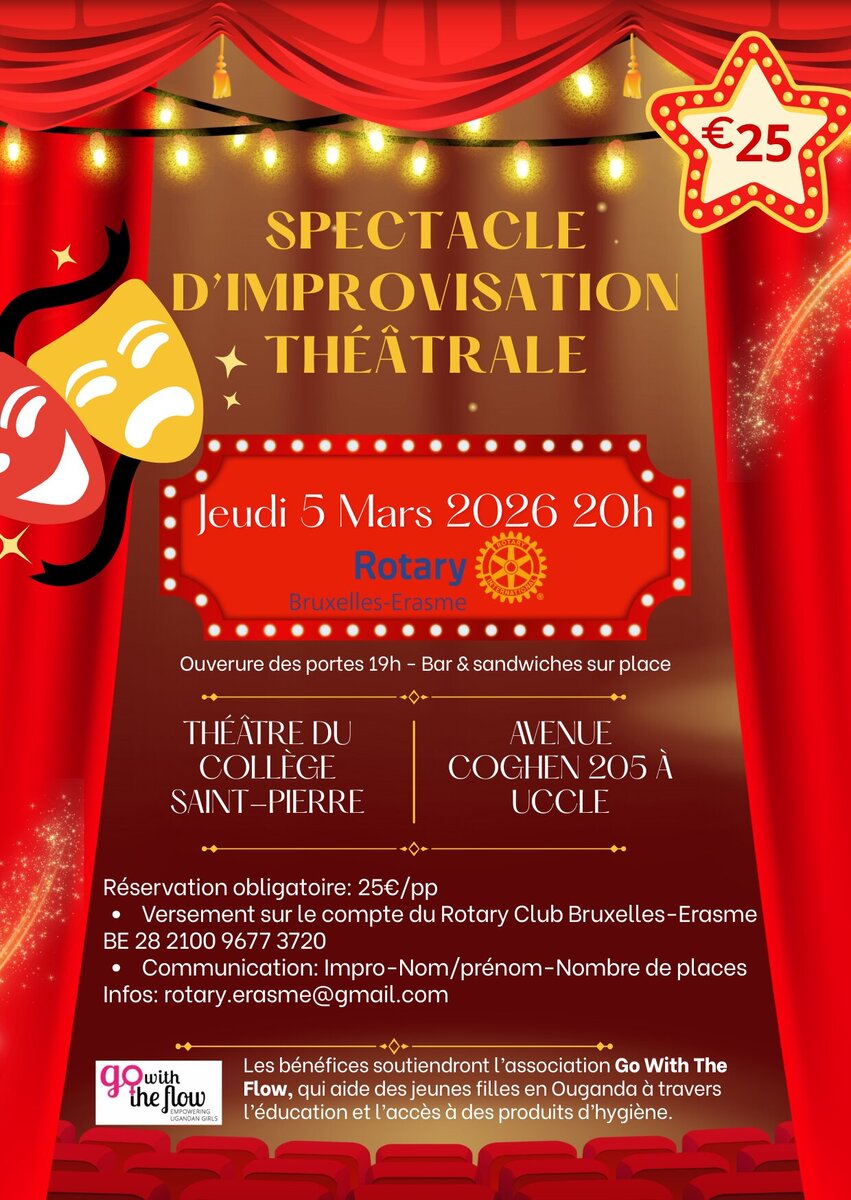 Le jeudi 5 mars, préparez-vous pour une soirée où l’imagination n'a aucune limite ! Notre club organise un grand match d’improvisation théâtrale au Théâtre du Collège Saint-Pierre à Uccle.