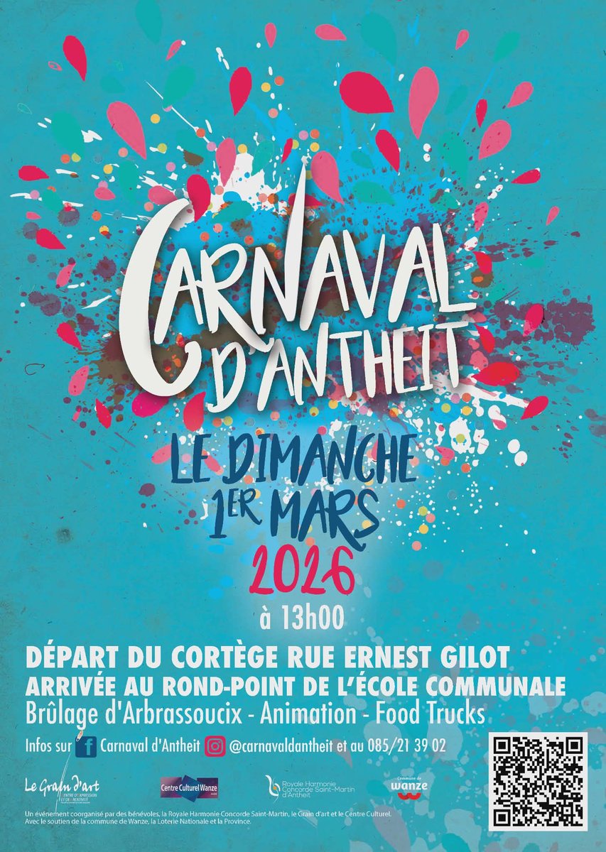 Le Carnaval d’Antheit 2026 aura lieu le dimanche 1e mars dès 13h.