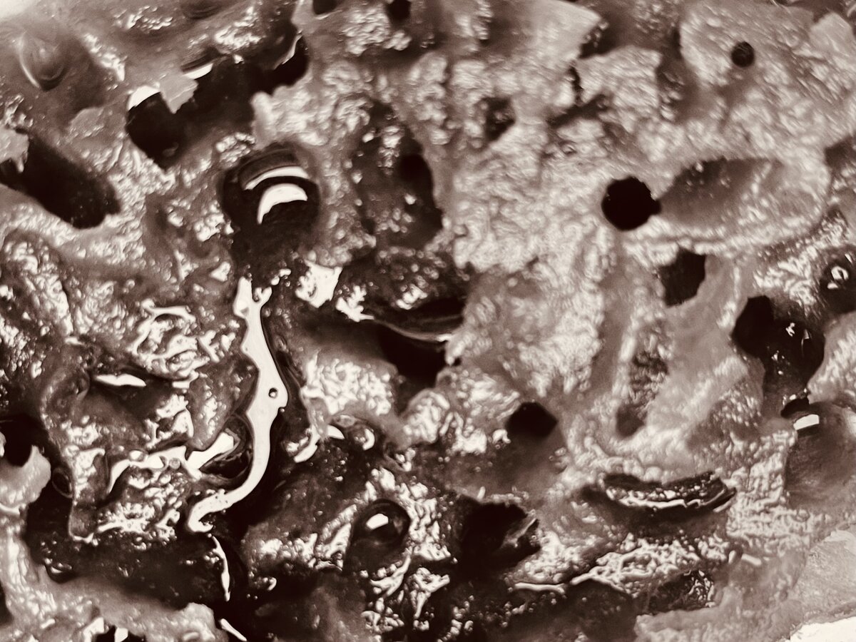 Suite à un travail d’échanges avec les membres de la Galerie Vertige, l’éponge, devenue métaphore, nous offre un éventail d’émotions, sensations, souvenirs.