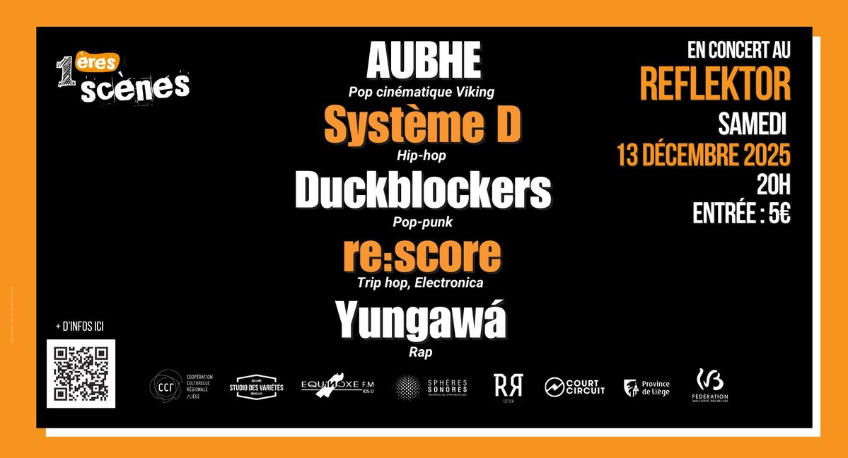Le samedi 13 décembre 2025, le Reflektor vibrera au son de la jeune scène liégeoise avec le concert de clôture du projet 1ères Scènes 💥