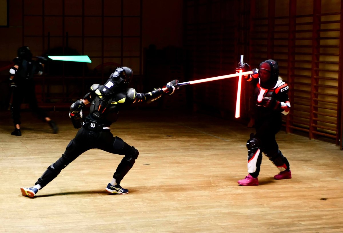 Il s'agit d'une activité sportive de combat au Sabre Laser codifiée selon le principe de priorité d'engagement, de réponse et de touches qui rapportent des points aux combattants selon des zones définies. Le premier arrivant à 15 points remporte la manche.