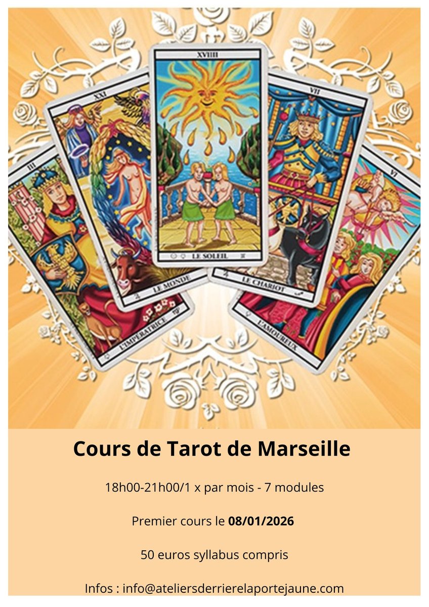 Un jeudi par mois de 18h00 à 21h00, nous explorerons, pas à pas, les Arcanes majeurs, leurs structures, leurs résonances et leurs messages profonds.