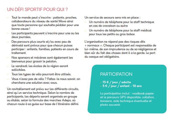 Tout le monde peut s'inscrire : patients, proches, collaborateurs du réseau de santé Move ainsi que toute personne qui souhaite pédaler pour une bonne cause !