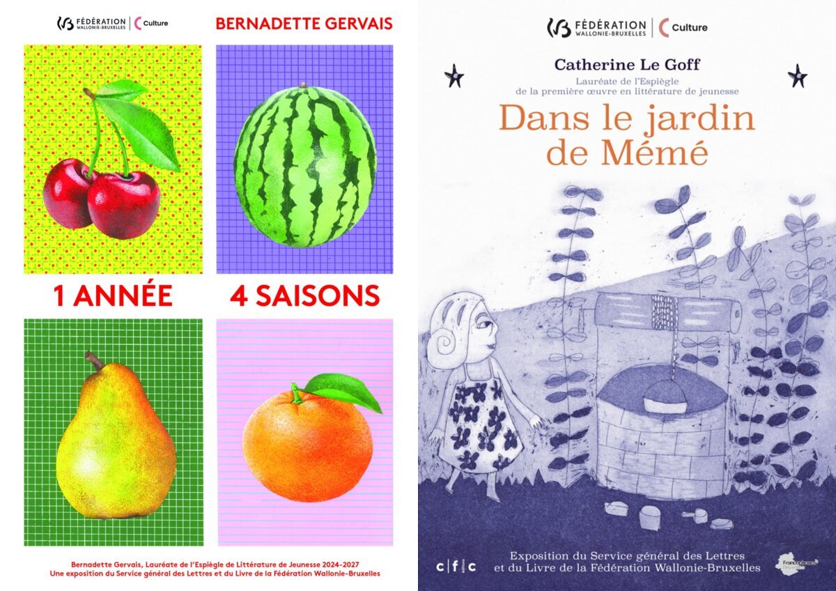 La première exposition, « Dans le jardin de Mémé », nous plonge dans l'univers de Catherine Le Goff, autrice et graveuse bruxelloise, lauréate du prix l'Espiègle de la première œuvre jeunesse Fwb 2025. Vous la trouverez au rez-de chaussée de la bibliothèque. La deuxième exposition, « 1 année, 4 saisons », est issue du travail de Bernadette Gervais, illustratrice à l'œuvre de plus de cent albums jeunesse, lauréate du prix l'Espiègle Fwb 2024 pour l'ensemble de son œuvre. Elle est présentée dans l'espace jeunesse du 1er étage de la bibliothèque.