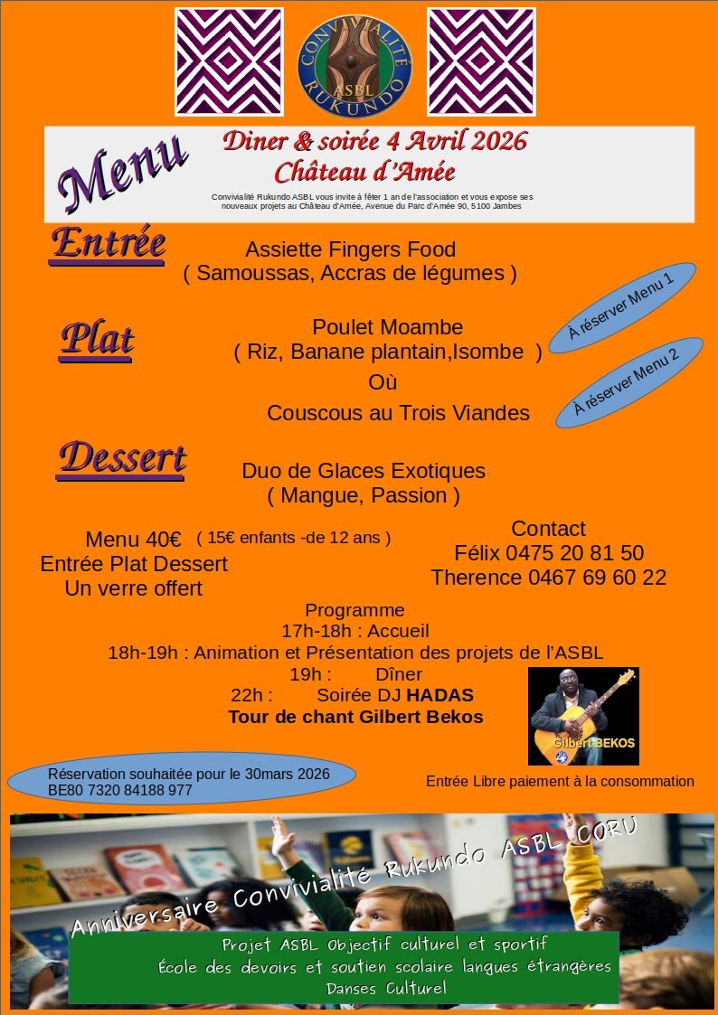 Convivialité Rukundo Asbl vous invite à fêter 1 an de l’association et vous expose ses nouveaux projets au Château d’Amée, Avenue du Parc d’Amée 90, 5100 Jambes