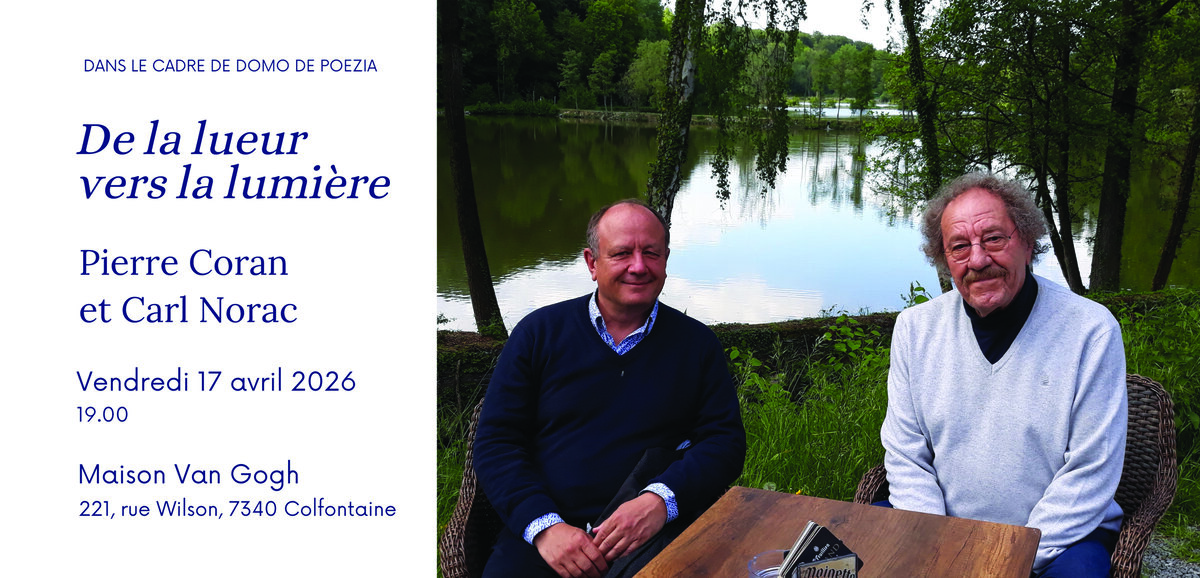 Ils présenteront chacun leur dernier livre : Carl Norac, « Le livre de la lueur » ( Editions Bruno Doucey, février 2026 ) et Pierre Coran, « Ciels d'Ostende » ( L'arbre à paroles, 2024 ).