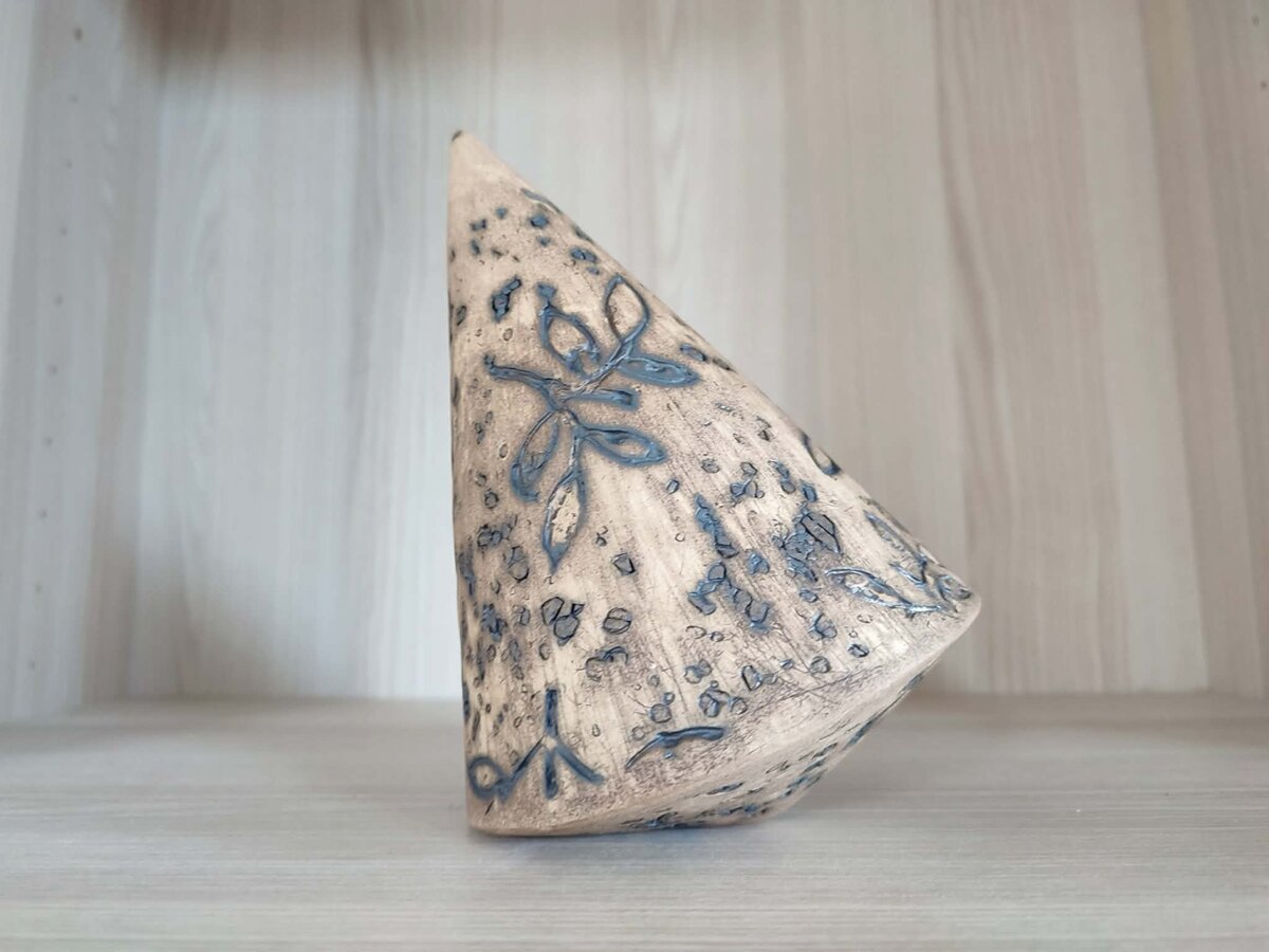 D’abord tournée ou modelée en une forme géométrique, centrée et symétrique, il y a ensuite un travail de déformation. L’artiste joue aussi avec les textures, craquelures, couleurs. Il donne à chaque pièce une identité, sinon une âme qui lui est propre. Cela permet à ses œuvres de devenir des pièces uniques, singulières.