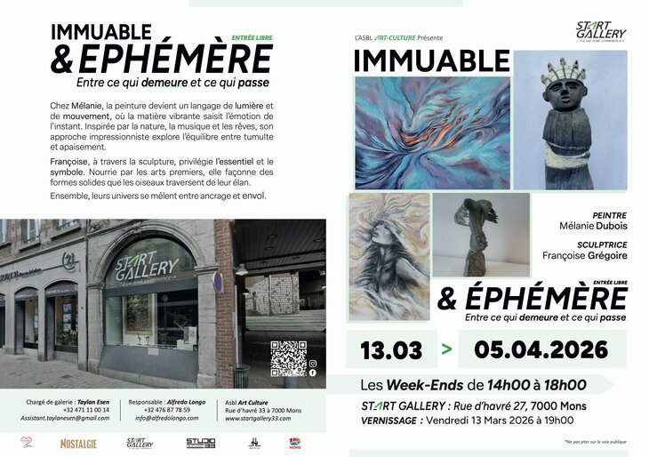 ✨ La St'Artgallery & L'ASBL Art Culture ont le plaisir de vous inviter au vernissage de l’exposition “ Immuable & Éphémère ”, le vendredi 13 Mars 2026 à 19h00 🥂.