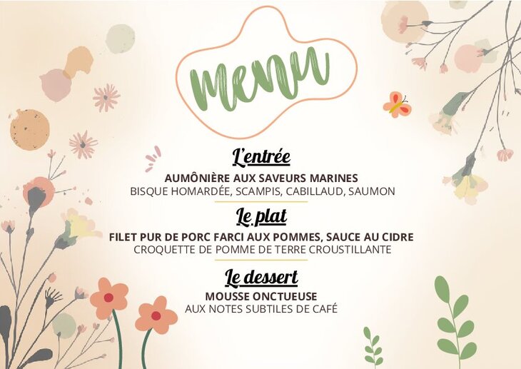 - Dessert : Mousse onctueuse (Aux notes subtiles de café).