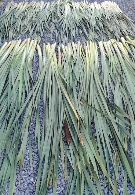 Initiation au tressage des feuilles de massette.