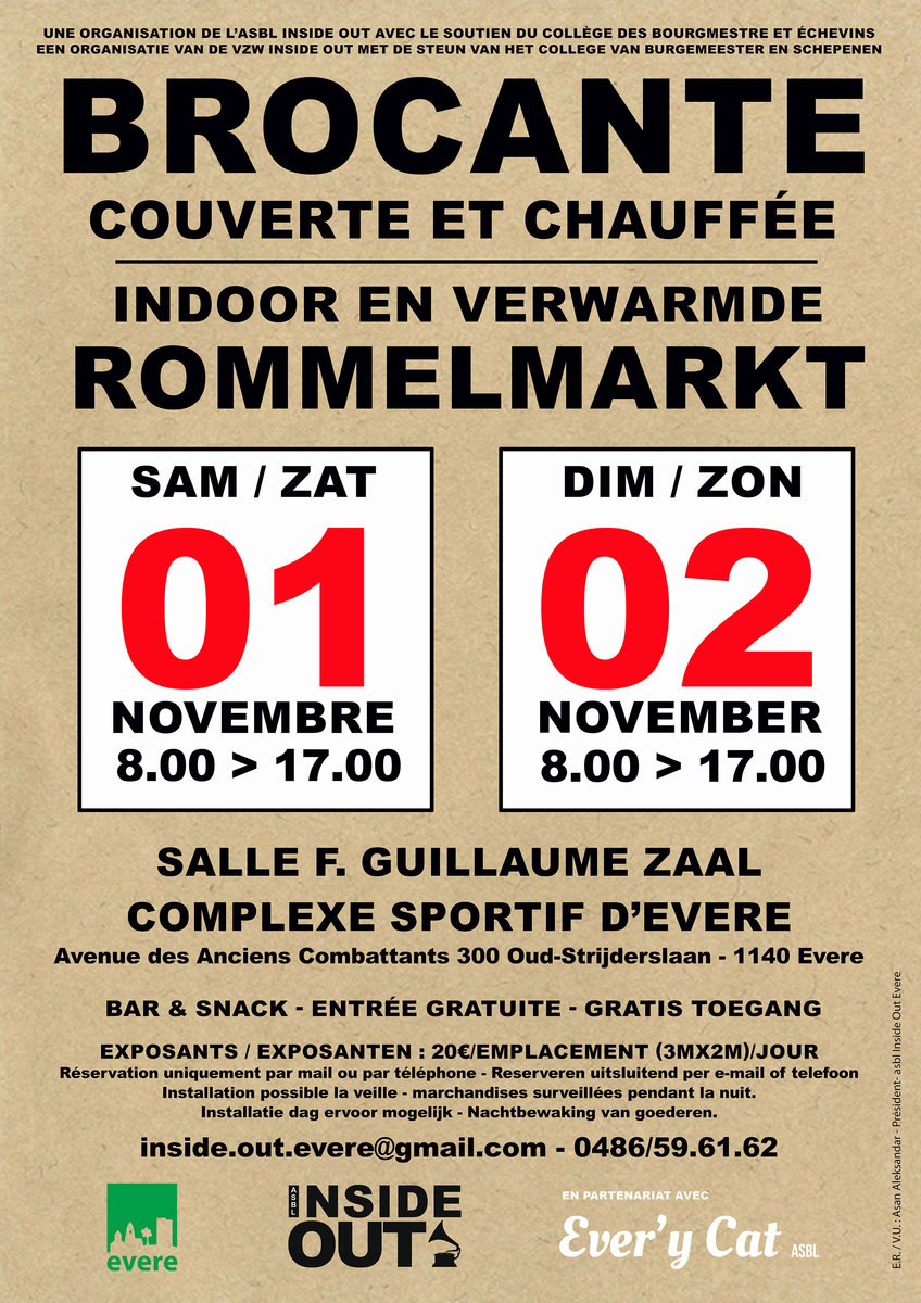 Grand brocante couverte et chauffée au sein de la salle omnisports à Evere (Bruxelles). + de 1200 m² d'exposants à découvrir sur deux jours ! Snack et Bar sur place. Entrée et wc gratuit.