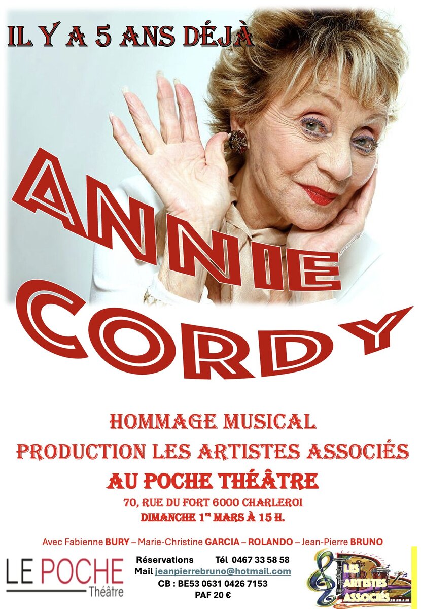 Il y a 5 ans Annie Cordy nous disait adieu. jp Bruno son filleul de théâtre lui rend hommage ce dimanche 1 mars au Poche Théâtre de Charleroi, à 15 h.