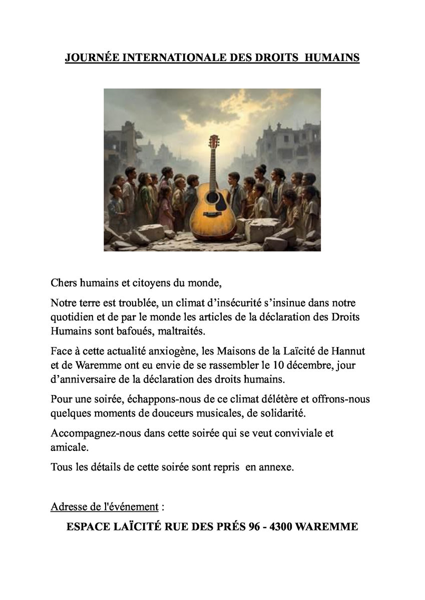 Face à cette actualité anxiogène, les Maisons de la Laïcité de Hannut et de Waremme ont eu envie de se rassembler le 10 décembre, jour d’anniversaire de la déclaration des droits humains.