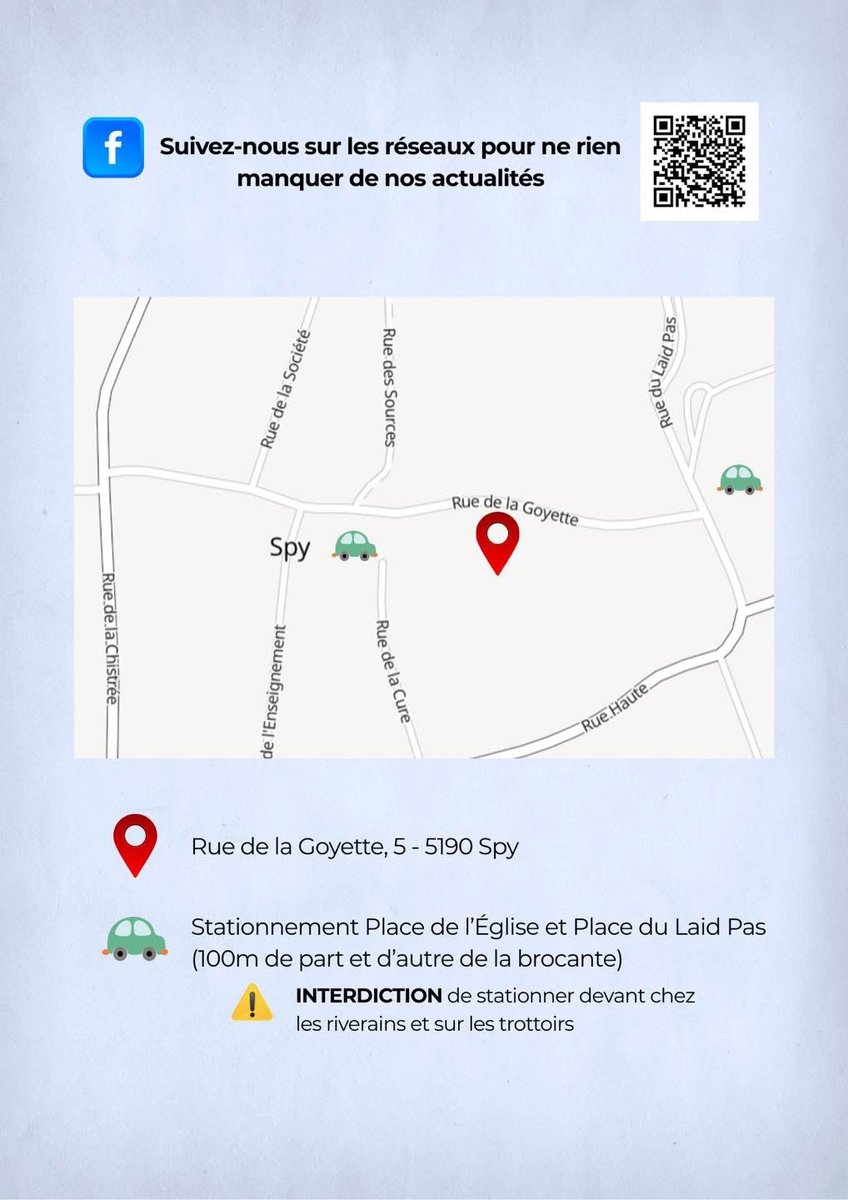 🅿️ Parking à l’avant de la brocante pour les visiteurs ainsi qu’à 100m de part et d’autre de la brocante