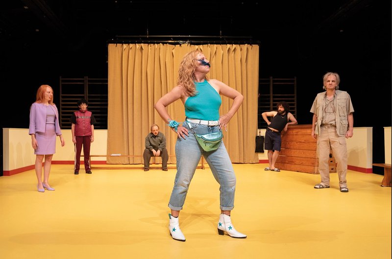 Tout le monde a mal quelque part : au corps, à la tête ou au cœur. Six personnes (seule Nadine n’est pas venue) viennent se soigner au sein d’un groupe, réunies par une animatrice, doux mélange entre une artiste et une assistante sociale. Elles viennent faire du théâtre pour « aller mieux » et tout le monde est de bonne volonté pour essayer de monter La nuit des rois de William Shakespeare dans une salle de gym. Elles font du théâtre, assises sur un plinth ou dans les espaliers. Le groupe est joué par des actrices et acteurs masqués, couche supplémentaire pour sonder l’âme humaine et évoluer de quiproquo en quiproquo. Comme dans La nuit des rois on se travestit, au contraire de La nuit des rois, on n’arrive pas à s’aimer si facilement. À travers des mots empruntés ou des silences gênés, leur humanité apparaît et se confronte à la solitude de ce monde, où prendre soin est parfois mis de côté.