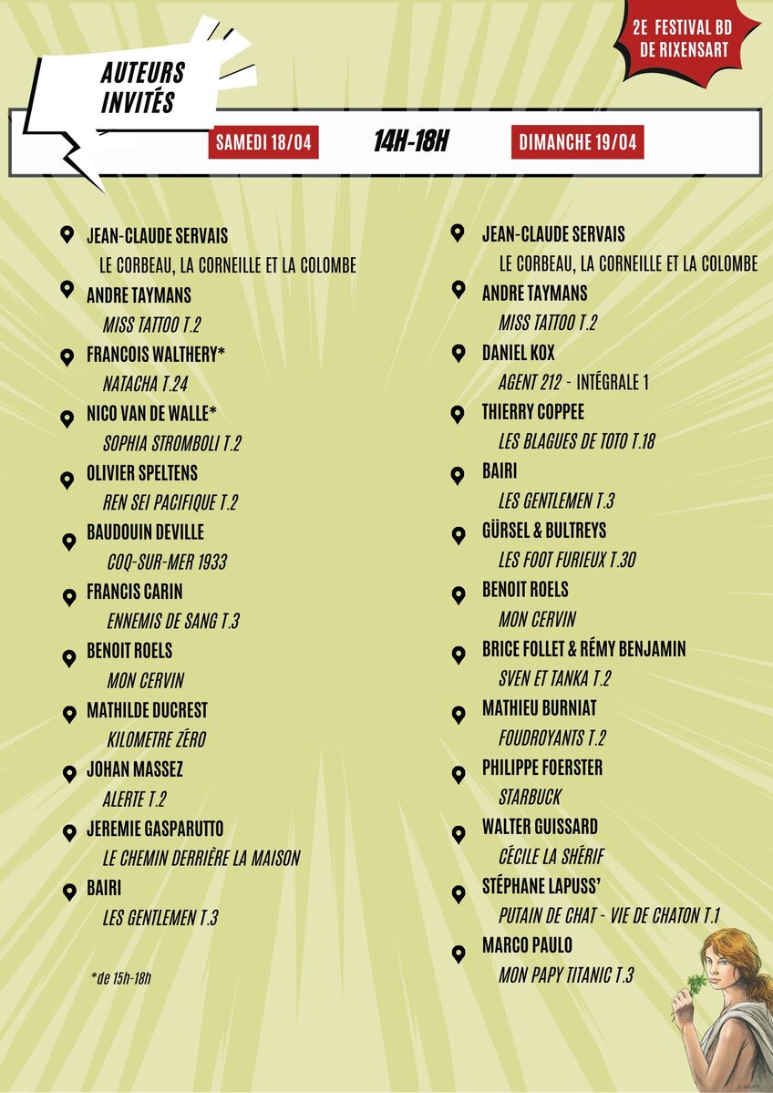 Crayons et feutres reprennent leur danse sur le papier pour le plus grand bonheur des bédéphiles ! Après un premier succès esquissé l’année dernière, le Festival bd de Rixensart revient pour une 2e édition haute en couleurs ! Deux après-midi entières consacrées au 9e art, entre découvertes et partage, coups de crayons et bulles de discussions !