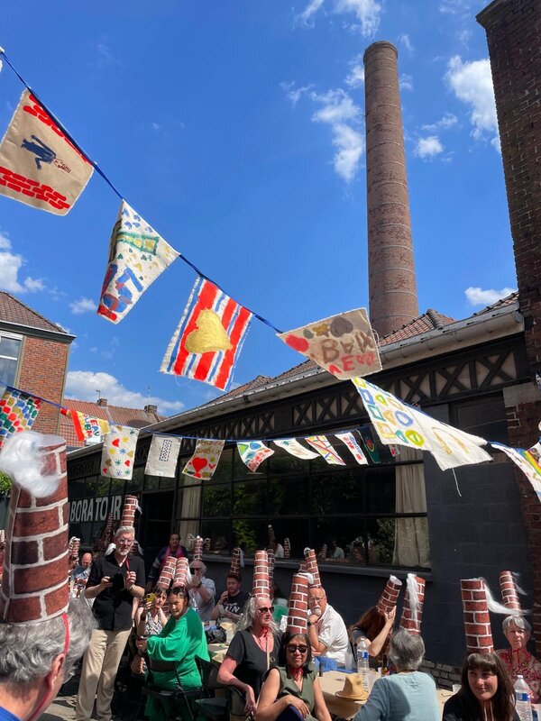 Le Banquet des Cheminées à Roubaix le 1er mai ! Venez célébrer le patrimoine industriel et ses souvenirs, partager un repas et chanter avec nous ! De 11h30 à 13h, projections et visite de l'exposition "Motifs, de la rue au tissu" en présence d'artistes. De 13h à 15h30, profitez du banquet avec repas et musique joyeuse du BalaSo > Attention, repas complet, mais vous pouvez apporter votre propre repas ! Le Non-Lieu reste ouvert jusqu'à 18h.