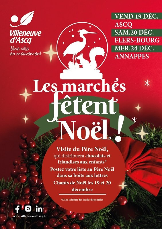 Le vendredi 19 décembre, le marché d'Ascq accueillera le Père Noël pour une rencontre avec les enfants, une distribution de friandises et le lancement des festivités en musique avec l'Orchestre Universitaire de Lille. Pour ajouter à cette atmosphère chaleureuse, l'Orchestre Universitaire de Lille jouera plusieurs morceaux festifs tout au long de la matinée. C'est une belle opportunité de profiter d'un marché animé et convivial aux couleurs de Noël.